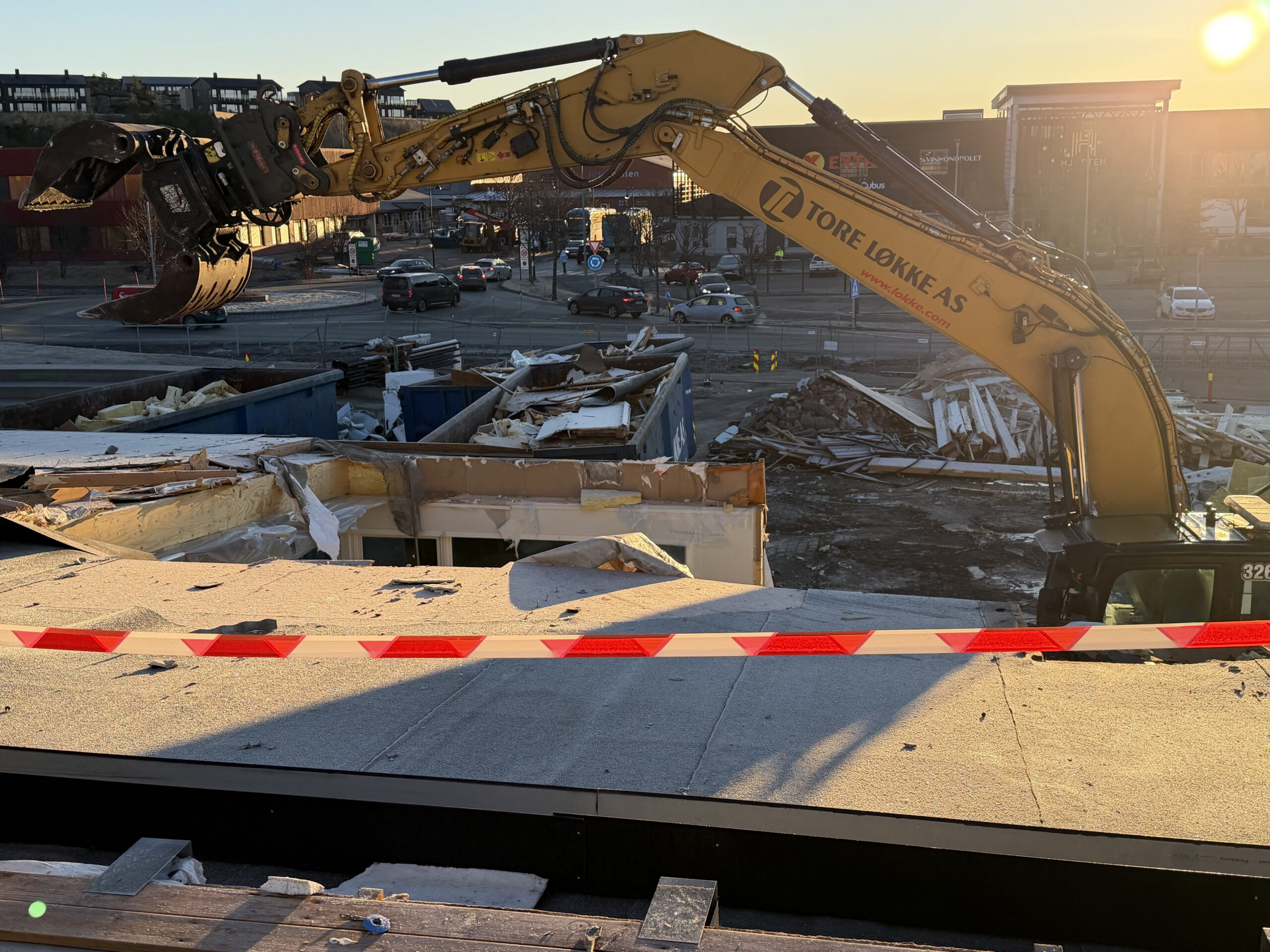 Neste uke starter demonteringen av interimskolen, noe som vi føre til økt aktivitet og trafikk i området. Ved gammelskolen pågår nå rivingen for fullt.