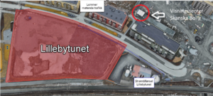 Skanska Bolig har etablert visningssenter (se plassering på bilde).